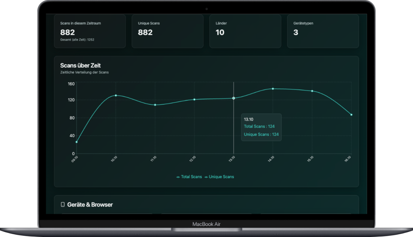 Whether scanned from a poster, flyer, or screen — each interaction is tracked, analyzed, and ready to be turned into actionable insight.
