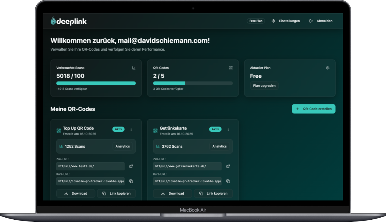 Deeplink lets you create, share, and analyze trackable QR codes and short URLs — all in one intuitive dashboard.